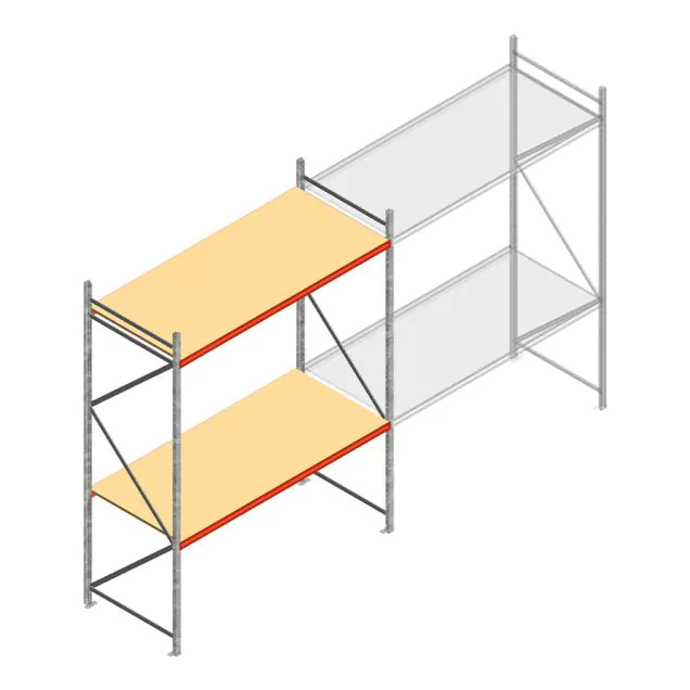 Grootvakstelling AR 3000x2700x1000 mm (hxbxd) 2 niveaus verzinkt beginsectie met voorgemonteerde frames